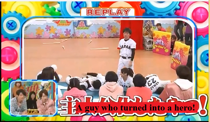 The third round was the opponent team's turn. They have to do swinging bat, and have to run for 5 metres, but only one person didn't do the swinging bat. This time, Arashi can't managed to guess corectly.